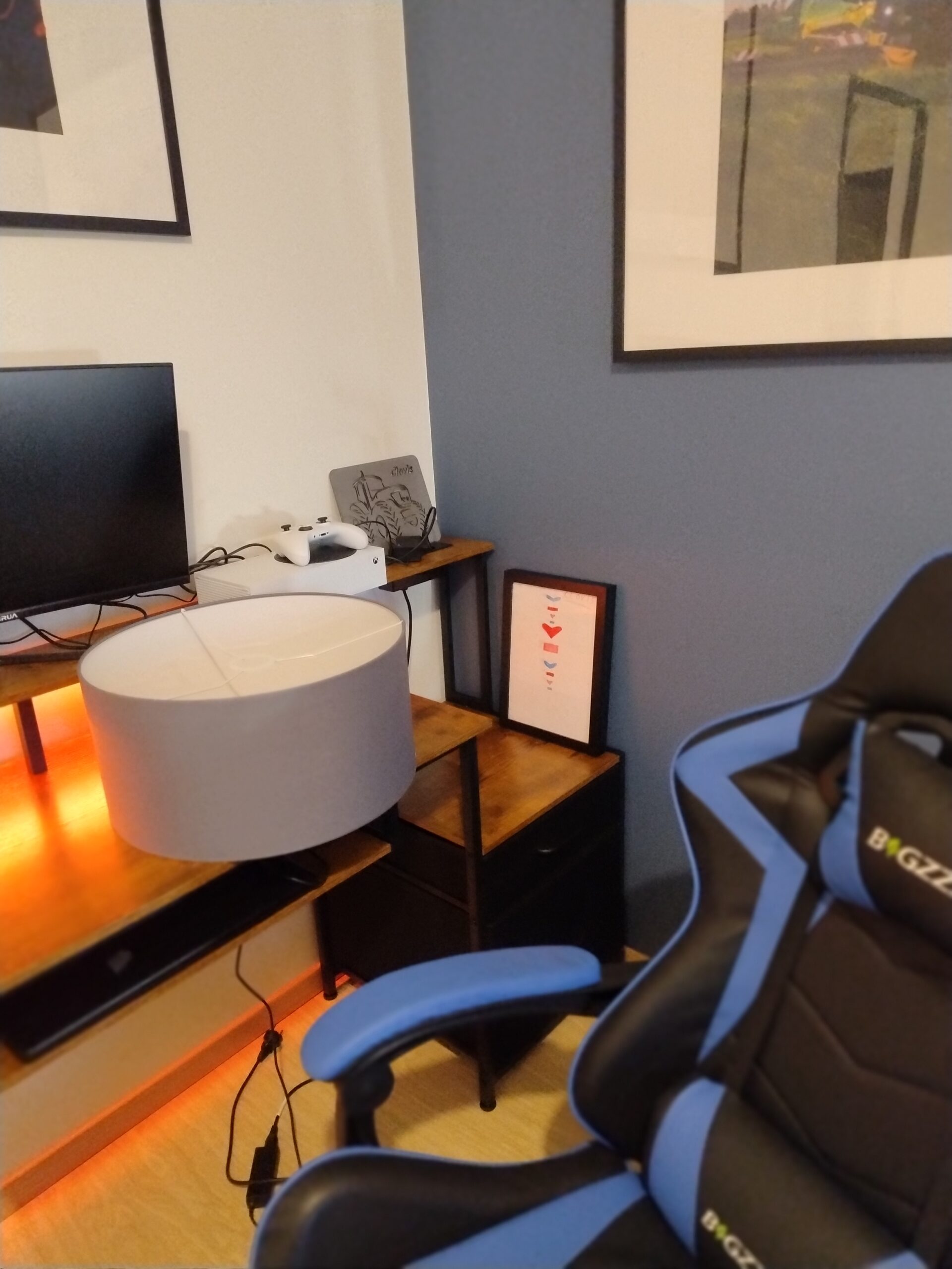 L’aménagement choisi permet à Clovis d’avoir un espace bureau, un espace nuit avec une nouvelle table de chevet, et un coin vitrine pour exposer les différentes miniatures. Les coloris et les matériaux choisis sont plus actuels, dans un style industriel. Les nouveaux meubles sont harmonieux.