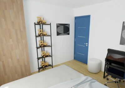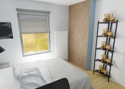 Clovis souhaite avoir une chambre qui correspond à son âge. En effet, sa chambre a été décorée lors de la réhabilitation de la ferme familiale, il avait alors 6 ans. Il est passionné de tracteurs et souhaite conserver sa personnalité dans son espace.