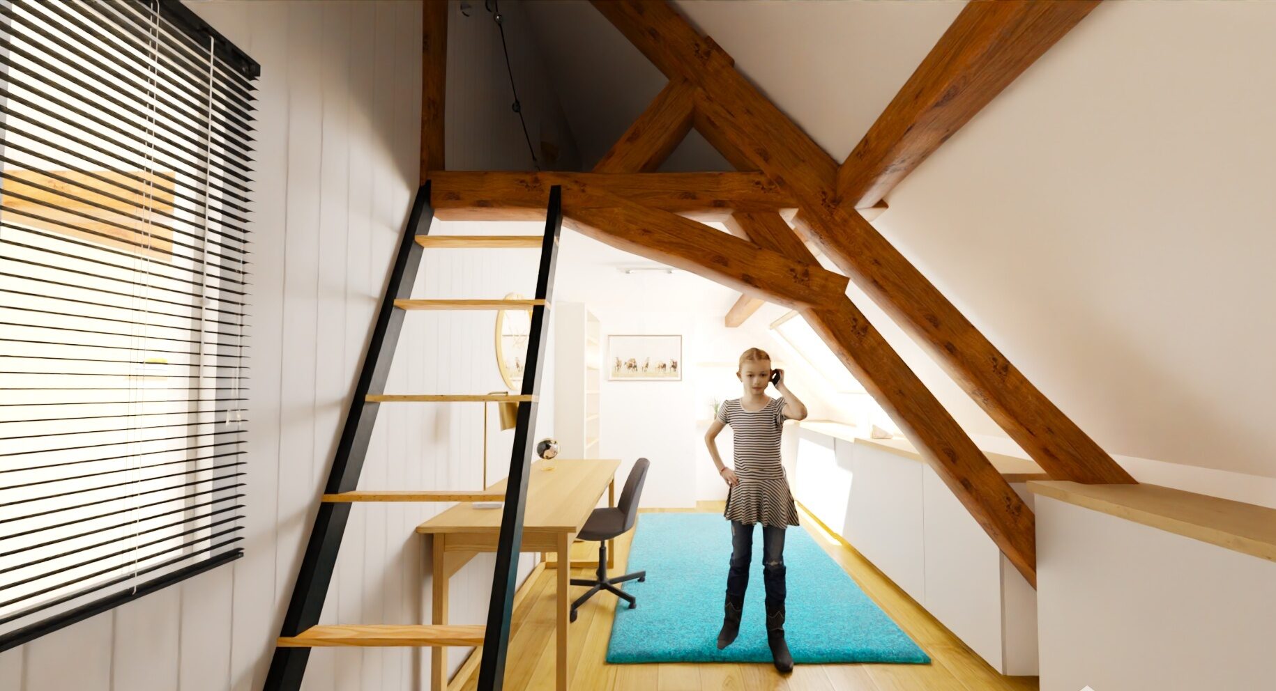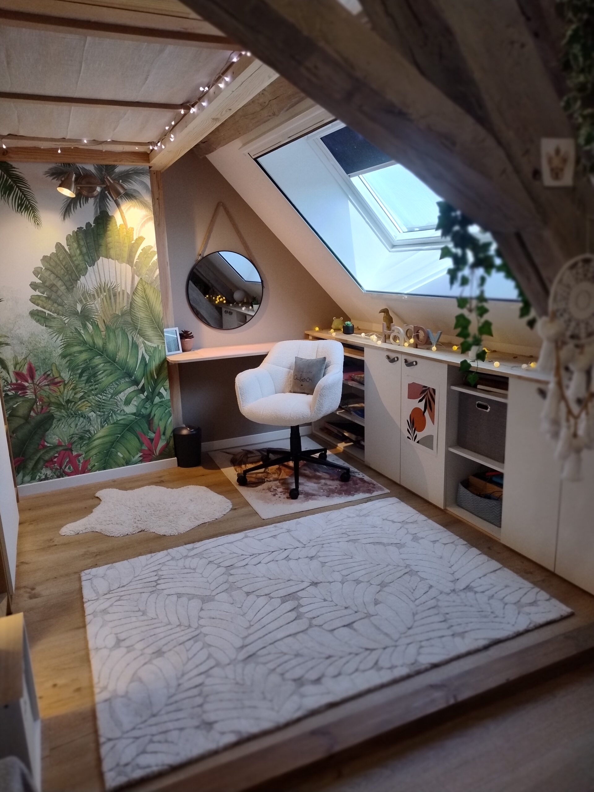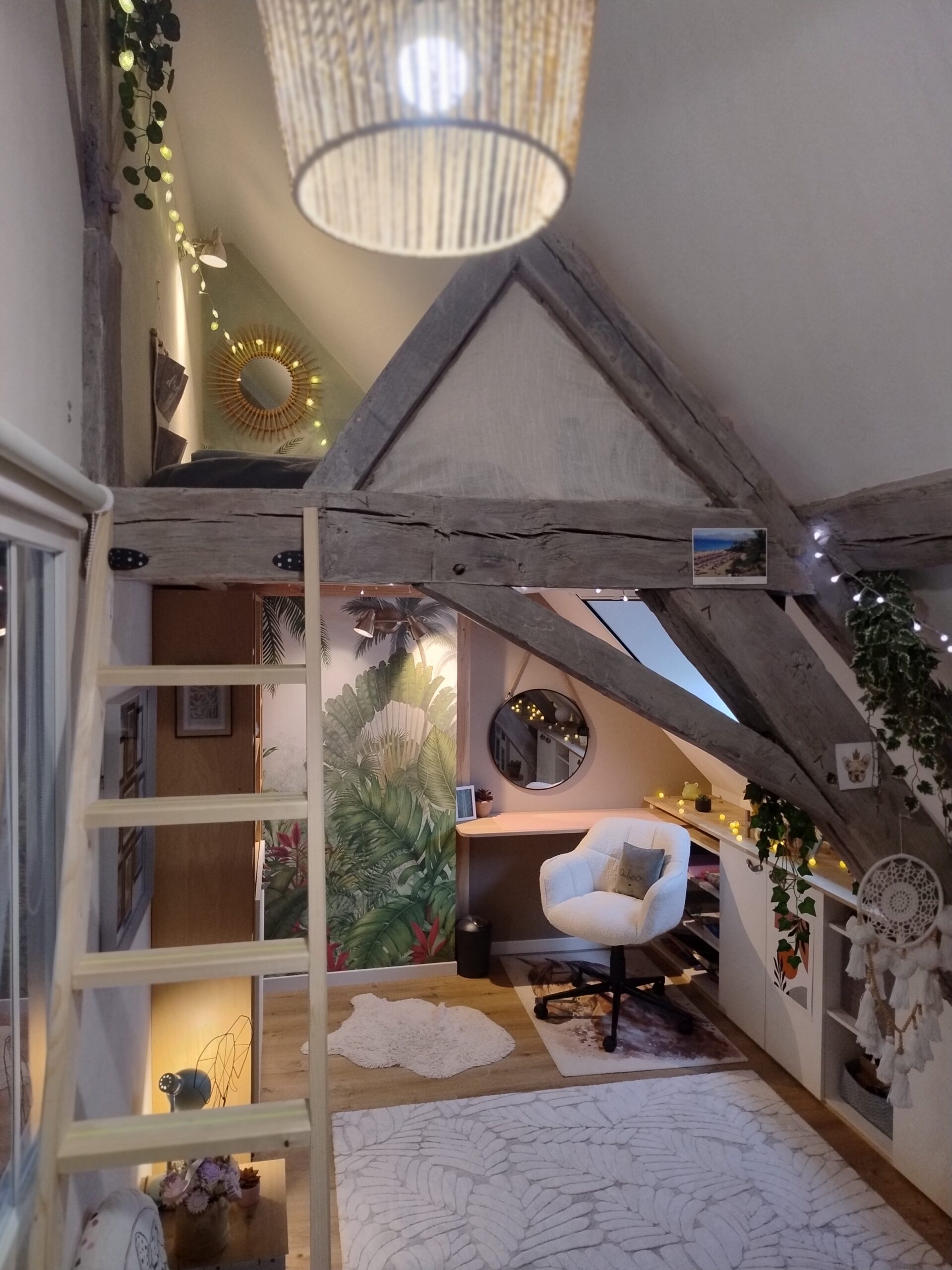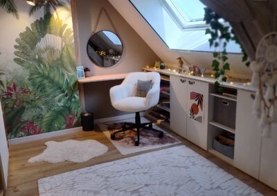 La chambre de rêve pour Oléna, un espace original et personnel qui lui ressemble ! Plusieurs zones dans cette chambre : couchage, lecture, travail, rangement et jeux !
